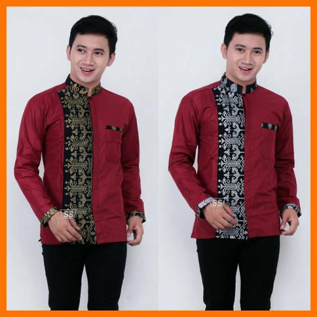 Selain terlihat lebih rapi dan resmi, menganakan batik juga sebagai wujud. Batik merupakan salah satu warisan budaya asli indonesia yang telah diakui oleh dunia. Kemeja batik kombinasi pria ini sangat cocok digunakan untuk acara resmi di kantor atau undangan pesta. Yes, kamu bisa memakai baju batik ini yang modelnya cakep dan cool untuk dikenakan. Gamis koko cowok kombinasi batik dengan model langsung untuk sholat ied lebaran;